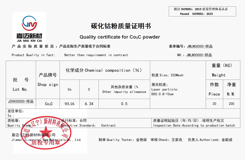 产品展示 当前位置:首页产品展示—碳化钴 Cobalt Carbide (Co3C)